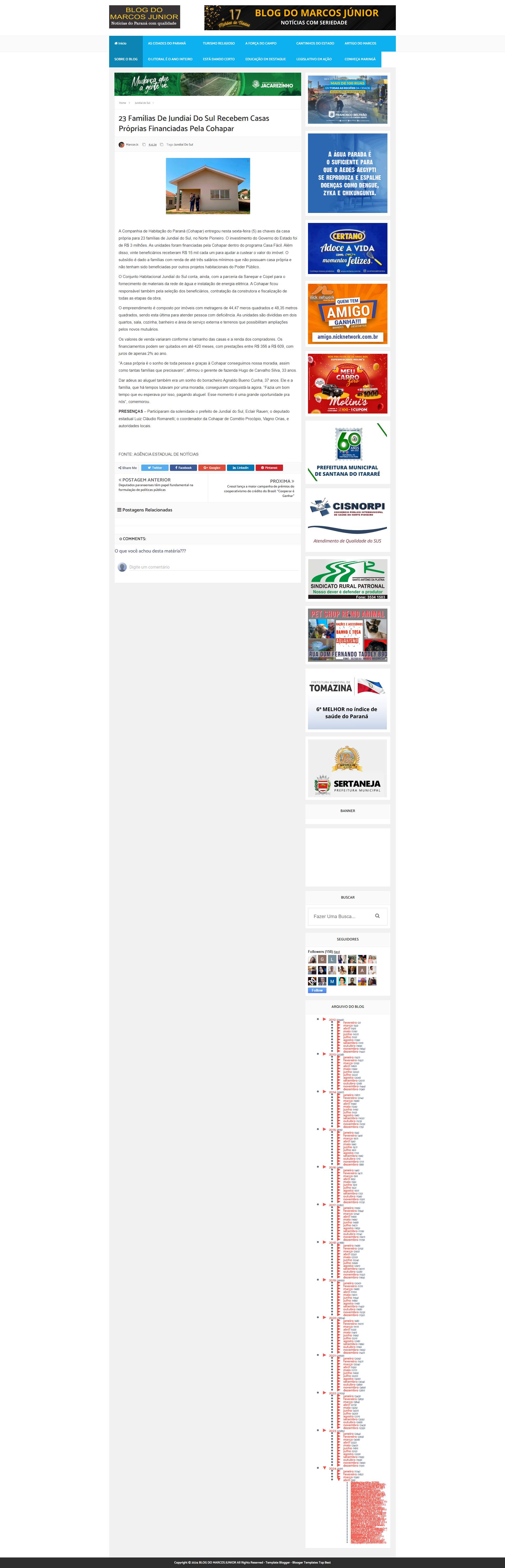 Cohapar) entregou nesta sexta-feira (5) as chaves da casa própria para 23 famílias de Jundiaí do Sul, no Norte Pioneiro. O investimento do
